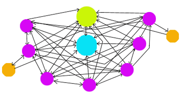 entrambi i versi). Ci sono due eventi terziari (in arancione) che costituiscono