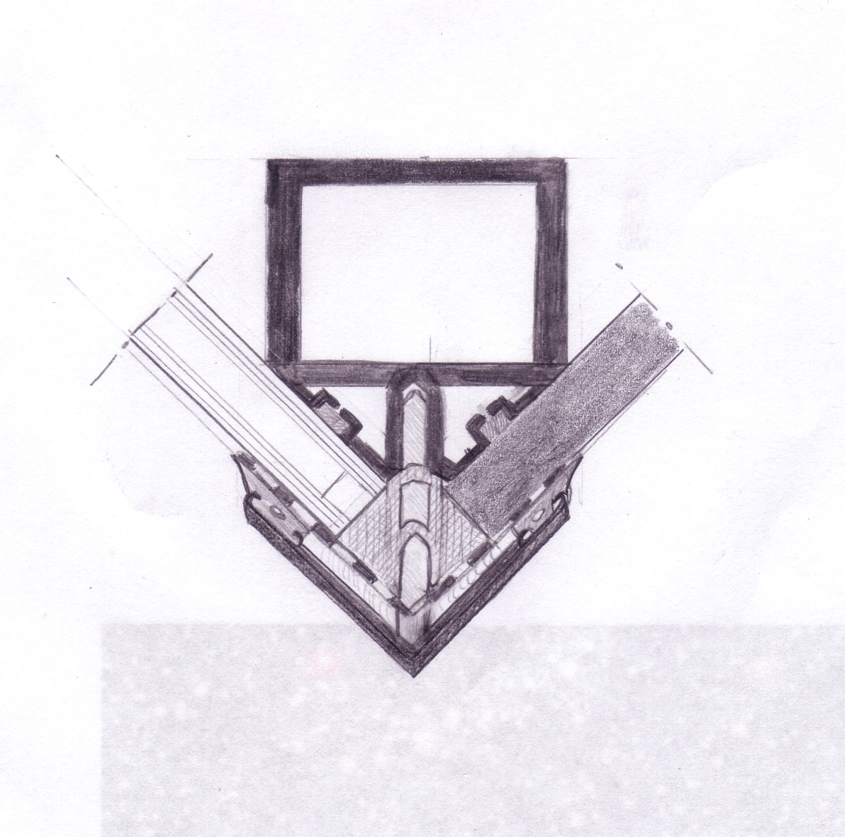 Per quanto riguarda la relazione tra edificato preesistente e questa soluzione di facciata si può pensare di eliminare la facciata in latero-cemento e di chiudere gli ambienti tra un solaio e l'altro con una vetrata, esternamente a questa si svilupperebbe poi il tipo di rivestimento spigoloso. Tra i due rivestimenti si verrebbe così a creare un'intercapedine. Questa coibenta termicamente l'edificio, per questo motivo bisogna prevedere le opportune prese d'aria alla base e in cima alla facciata.