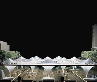 Trasformando l'idea di sole ho pensato che un edificio con spunzoni che fuoriescono a raggiera dal corpo centrale sia luminoso.