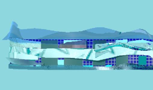 stessa. Altri sottili e curvilinei pannelli corrono e abbracciano tutta la