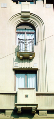 Mantenendo le proporzioni del nostro spazio assonometrico, ho costruito un modello tridimensionale partendo dagli schizzi interpretativi-progettuali di destra. Le fotografie mostrano l' articolazione dei volumi da piu' punti di vista; osservando l' architettura dal basso i tre livelli aggettanti appaiono come nel quadro di Larionov.