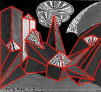 BALLA, Bozzetto scenografico, 1915 Elaborazione1: contorni Elaborazione2: costruzione wireframe (building...)
