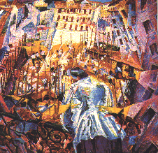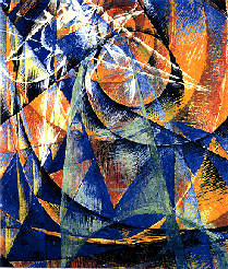Noi giungiamo cosŤ a ci• che chiamiamo pittura degli stati d'animo e pittura dei suoni, rumori e odori. Nella descrizione pittorica dei diversi stati d'animo plastici di una partenza, certe linee perpendicolari, ondulate e come spezzate, qua e la' attaccate a forme di corpi vuoti, possono facilmente esprimere il languore e lo scoraggiamento.Confuse, risultanti, rette o curve che si confondono come gesti abbozzati di richiamo e di fretta, esprimeranno un'azione caotica di sentimenti.Linee orizzontali, fuggenti, rapide e convulse, che taglino brutalmente, visi dai profili vaghi, e lembi di campagna daranno l'emozione plastica che suscita in noi colui che parte.