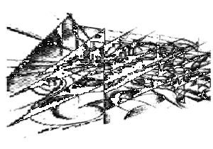 Visualizzazione prospettica 3D Tale funzione permette di avere varie visuali prospettiche del quadro in modo da individuare altri punti di vista. Viste dai lati, dall'alto, dal basso, diagonali e altre mi hanno fornito sempre nuovi spunti, comunque le più significative sono due: PROSPETTIVA VERSO DESTRA; PROSPETTIVA VERSO SINISTRA. Il quadro visto con questa ottica tende ad indentificarsi come la prospettiva di una stanza o comunque di un ambiente interno delineato da due pareti ben visibili.Questa funzione diviene quindi una ulteriore esasperazione della vista prospettica insita nell'opera di Balla che mi aiutato ancora per la interpretazione.