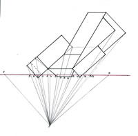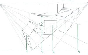 1-Determino i punti in pianta di ciascun volume e li porto sulla linea di terra
