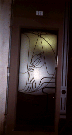 PARTICOLARE DELLA PORTA D'INGRESSO AL BLOCCO ASCENSORI