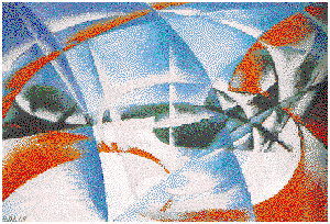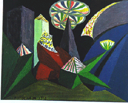 | BANDIERE ALL'ALTARE DELLA PATRIA. - G. BALLA | BOZZETTO SCENOGRAFICO - G. BALLA | LINEE DI VELOCITA'+PAESAGGIO - G. BALLA |
