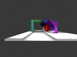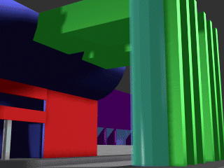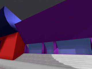 Lo spazio è costituito dai 3 volumi principali individuati: la stecca, il prisma e l'edificio ponte. Insieme formano uno stralcio di citta', attraversati da una strada centrale, elemento caro ai futuristi per celebrare la velocita' e il movimento. Il paricolare liberty viene inserito con la sua funzione originaria come sostegno dei pilastri che reggono la loggia.