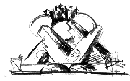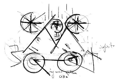 Fuori, verso, dentro la citta',un cammino infinito dove scale, viali e vortici di luce creano una fantasticascenografia urbana quasi a prevedere la cultura a venire.