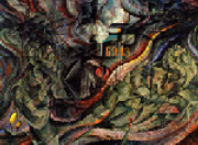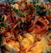 Umberto Boccioni nacque a Reggio Calabria il 1882 e morì a Sorte (Verona) nel 1916. Nel 1901 si trasferì a Roma, dove apprese i primi rudimenti di pittura e cominciò a frequentare, insieme con Severini, lo studio di Balla legato in quel momento al divisionismo. Dopo aver conosciuto Marinetti, nel 1910 firmò il "Manifesto dei pittori futuristi"; contemporaneamente eseguì le sue prime opere futuriste e successivamente cominciò a dedicarsi anche alla scultura. Nelle ultime opere la sua pittura assume caratteri nuovi, con un'attenta rimeditazione del futurismo alla luce anche dell'esperienza cubista.