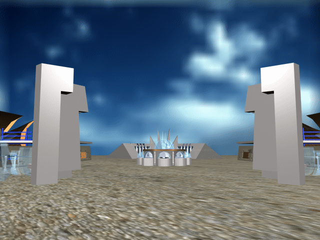 - La nostra CITTA' VIRTUALE è così organizzata : si accede attraverso i due GRATTACIELI-PROPILEI, nei cui attici sono collocati APPARTAMENTI con vista panoramica sulla città stessa, si procede poi verso il TEMPIO collocato al centro della grande piazza, e di qui lateralmente verso i due COMPLESSI DECOSTRUTTIVISTI, all'interno dei quali trovano posto i due TEATRI, e frontalmente verso la STAZIONE, nei cui atrii sono collocati gli AMBIENTI ESPOSITIVI -