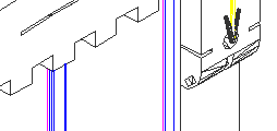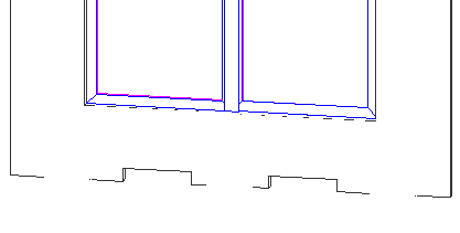 In questa vista si può notare il particolare del davanzale (layer bianco) che si inserisce sulle spalle della finestra (layer nero). Questi è stato creato dalla composizione di più solidi: alcuni parallelepipedi semplici, altri creati dall'unione ("union ") o sottrazione ("subtract") tra essi e cilindri, semicilindri o quantaltro di simile...