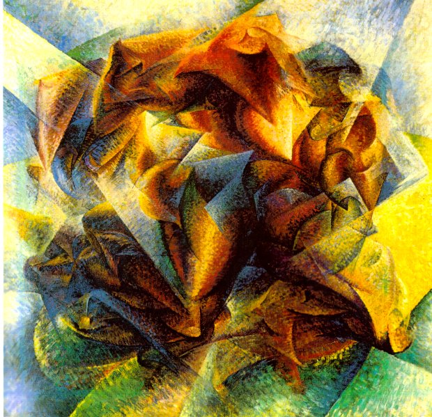 Umberto Boccioni (Reggio Calabria, 1882 - Verona, 1916) e' il maggior artista del futurismo ed uno dei principali italiani, malgrado la brevita' della vita gli abbia impedito l'approfondimento della propria personalita'. Dal 101 vie a Roma, dove conosce pittori d'avanguardia, come Severini e Balla, e dove ha inizio il suo distacco dalla cultura tradizionale, preferendo apprendere il disegno da un cartellonista, come un moderno visualizzatore e propagatore di idee, piuttosto che nelle scuole d'arte, nella convinzione che sia "un errore bestiale studiare durante lunghi anni cio' che ha formato la verita' in altre epoche". Piu' importante e' il trasferimento, sulla fine del 1907, a Milano, la citta' del "nostro tempo industriale"; a Milano si incontra con Previati, uno dei maestri del divisionismo e, dopo il lancio del Manifesto Futurista con Marinetti, decidendo dopo accanite discussioni, di lanciare a sua volta i due manifesti della pittura futurista insieme a Carra', Russolo, Balla, e Severini. Da questo momento Boccioni diventa uno dei massimi esponenti della nuova corrente. Pittore, scultore, teorico, ne sostiene fervidamente le idee con la validita' delle proprie opere e con scritti che costituiscono ancora oggi il veicolo piu' efficace per comprendere il futurismo.