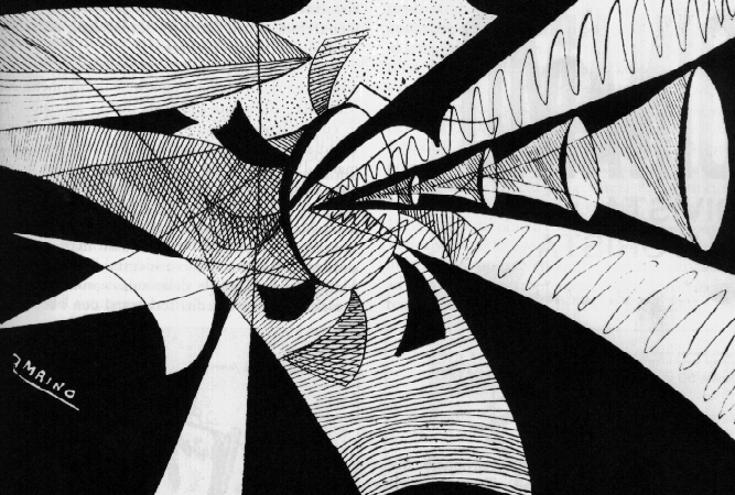 L’idea di spazio è suggerita soprattutto dalla parte destra dell’immagine; essa trasmette la sensazione di profondità individuando un punto di fuga al centro. Inoltre il movimento è generato dalle linee curve.