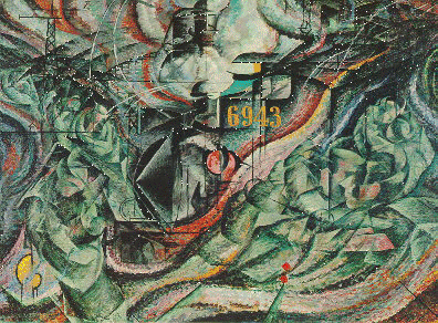 Quello che colpisce nel futurismo italiano e'il carattere violentemente polemico e provocatorio dei testi stessi nei quali la volonta' di rottura e' manifestata con toni esagerati e perentori. Il futurismo e'portatore di una carica distruttiva,di una volonta' di far tabula rasa per ricostruire naturalmente. Il macchinismo e l'ansia della velocita'che hanno mutato la vita dell'uomo, il suo ambiente,le sue abitudini,sono i nuovi miti futuristi. "...TUTTO SI MUOVE,TUTTO CORRE,TUTTO VOLGE RAPIDO. UNA FIGURA NON E'MAI STABILE... LO SPAZIO NON ESISTE PIU'..." Quale miglior commento ad un'opera futurista se non quello di uno dei suoi autori?