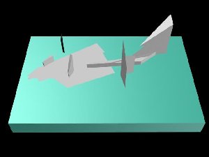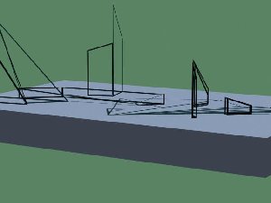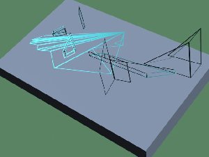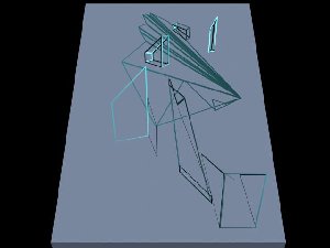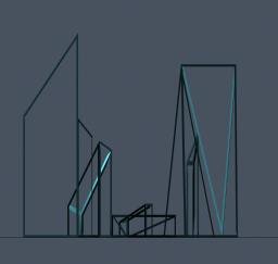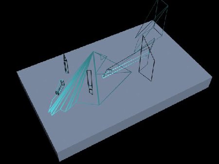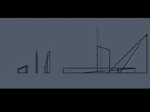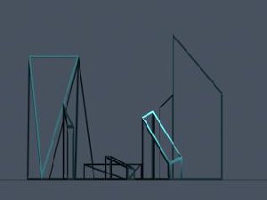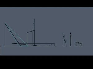 Per passare dal disegno (fatto di punti, linee e superfici) al volume nello spazio ho utilizzato un passaggio intermedio: i solidi nello spazio visualizzati con un materiale wireframe, a metà tra il disegno e la realtà.