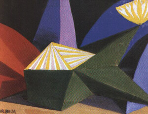 Il modello da me creato osservato da una certa distanza e da una certa altezza (come nel caso del primo Render) mostra la somiglianza con il quadro di Balla di partenza.