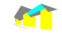 | Sono cosi' giunto alla definizione del mio progetto: un CENTRO POLIFUNZIONALE (a destinazione terziaria, commerciale, pubblica e privata), costituito da un unico edificio, formato dall' unione di piu' volumi: un grande prisma a base triangolare, disposto orizzontalmente, nel quale trovano collocazione negozi, ristoranti e bar; due volumi simili al precedente e disposti ciascuno ad una estremita' dello stesso, con la funzione di terrazza; il tutto elevato da terra su quattro parallelepipedi (i due centrali sono cubi), nei quali trovano invece collocazione uffici e sale riunioni. |