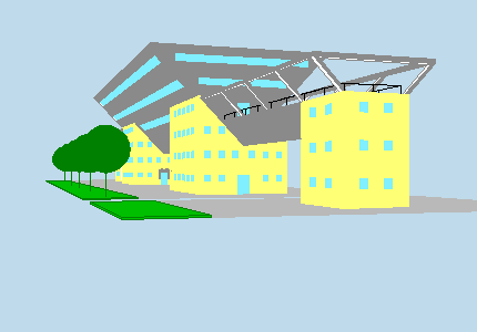disegnata con AUTOCAD 12, prendendo spunto da note architetture postmoderne. In particolare, per l' analogia che ho riscontrato con la mia idea progettuale, ho considerato: |