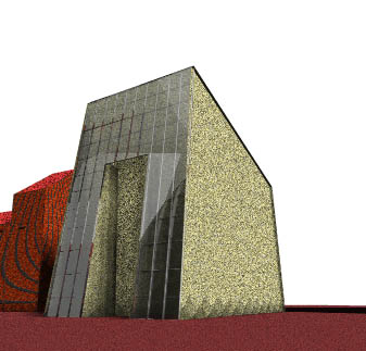 Costruito in cemento presenta una facciata in ferro e vetro che crea interessanti giochi di riflessioni.