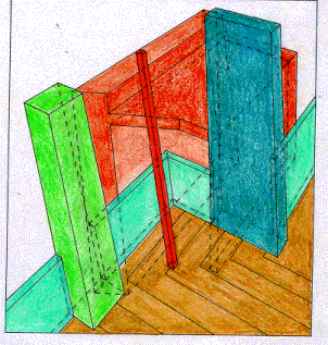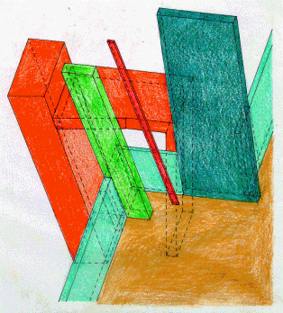 I piani e i volumi di un ambiente non sono più isolati, inscritti in tanti spazi regolati da una successione prospettica, ma si compenetrano in quanto concorrono alla formazione di una nuova individualita', alla costruzione dell'organismo autonomo che l'artista deve creare. Piani diversi si avvolgono tra loro per formare un tutt'uno attorno ad un elemento centrale.