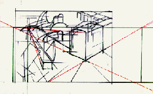 ho ottenuto un punto di vista, dei punti di fuga, la linea di orizzonte