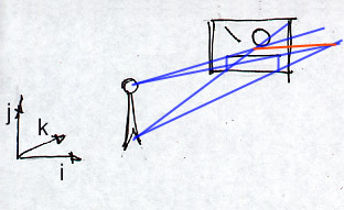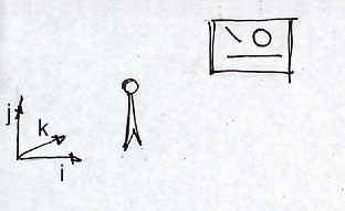 Come prima cosa é necessario "definire" l'ambiente in cui ci accingiamo ad operare, ipotizzando, nel nostro caso, trattarsi di una rappresentazione assonometrica in cui l'origine ed il verso degli assi vengono evidenziati e fissati dai versori i, j e k.