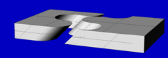 Un'altra delle trasformazioni applicabili ad una superficie e' il piegamento per taglio. Questa si verrà a creare nel momento in cui sposterò una superficie parallelamente ad essa, mantenendo ferma quella parallela ma opposta. In questo caso gli spigoli che uniscono le due supefici si allungheranno e si inclineranno rispetto alla normale. L'angolo che si verrà a creare tra la normale e il nuovo spigolo non potrà essere superiore a 60°, sempre per non deformare troppo il solido.