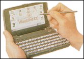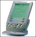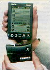 PALM-SIZED PC Grazie a questa soluzione, si può tenere in mano il computer e immettere i dati scrivendo direttamente sul display con uno stilo o addirittura con un dito. Può fornire funzioni di agenda, rubrica, e-mail, calcolatrice, ecc. Ovviamente è integrato un sistema di riconoscimento caratteri, visto che non è prevista tastiera. Porta seriale integrata, porta a raggi infrarossi (fondamentale per la comunicazione), jack per cuffie, ecc. |
