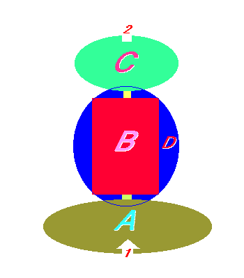L'elemento A del paradigma, l'interfaccia di entrata, non e' altro che la radice; infatti il nutrimento (che e' l'informazione in entrata) viene assimilato dalla pianta proprio in quella parte. La linfa prima di giungere alle parti superiori dell'albero,passa per il tronco e i rami maggiori, che nello schema sono rappresentati dalla parte B : il corpo centrale .Il corpo centrale e' il luogo dove tutte le informazioni vengono elaborate ed immagazzinate, e costituisce una parte fondamentele del mio paradigma; infatti, come si vede nello schema, e' l'unico pezzo ad interagire completamente con la zona D, gli obiettivi. L'ultima parte dell'albero e' costituita dalle foglie, che nel mio paradigma e' rappresentato dalla zona C. Le foglie infatti espellono durante la notte anidride carbonica ed altri gas che sono le informazioni in uscita.