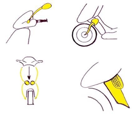 La forma del codino, dello specchietto, ecc..., sono prese dagli oggetti di design dell' immaginario di riferimento. L' immaginario di riferimento è infinito, questo è solo un esempio, quindi le possibilità sono molteplici.