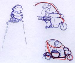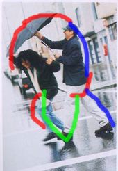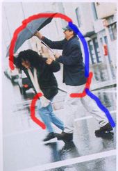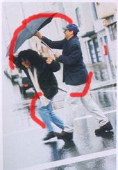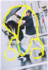 Le quattro fotografie rappresentano una lettura soggettiva di una semplice fotografia che però richiama nella mia mente il concetto di pioggia. La soggettività è esplicitata attraverso l'immagine dell'uomo in generale che si ripara dalla pioggia. Nel procedere delle immagini è constatbile la dinamica evolutiva del processo di costruzione del modello.Nel risultato finale dovrebbe essere individuabile una certa riconoscibilità dettata dalle matrici formali utilizzate.