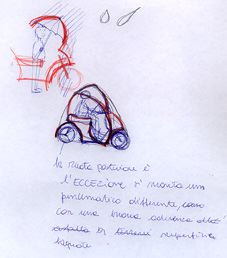 Queste immagini che appartenevano al mio immaginario di riferimento, sono servite come strumento di costruzione del modello dinamico sperimentando un' intercambiabilità delle matrici formali. E' nato così un processo di morfogenesi che dovrebbe comunque attribuire una caratteristica di riconoscibilità di ogni modello.