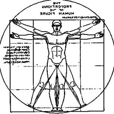 | ...CosÏ, il centro del corpo è naturalmente l'ombelico; infatti se si collocasse supino un uomo colle mani e i piedi aperti e si mettesse il centro del compasso nell'ombelico, descrivendosi una circonferenza non si toccherebbero tangenzialmente le dita delle mani e dei piedi. Ma non basta: oltre lo schema del circolo del corpo si troverà anche la figura del quadrato. |