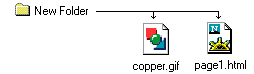 Let me make the point that not only does the source specify what image, it also specifys where is the image. The above source, "copper.gif", means that the browser will look for the image named copper.gif in the same folder (or directory) as the html document itself. Below are a few diagrams.