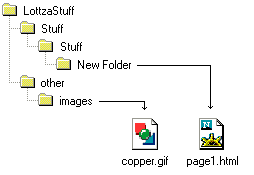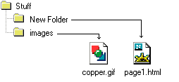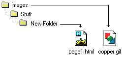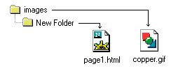 SRC="images/copper.gif" means that the image is one folder down from the html document that called for it. This can go on down as many layers as necessary. |