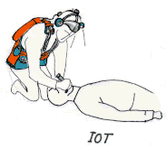 3. assenza del polso carotideo.Due operatori (paramedici) iniziano la RCP di base eseguendo in maniera coordinata la ventilazione con pallone di Ambu o cannula orofaringea di Mayo ed il massaggio cardiaco secondo il seguente schema: