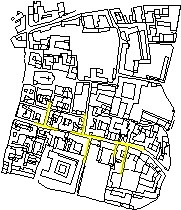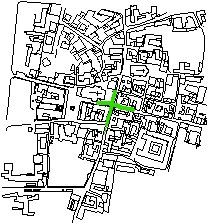 ...e ramificazioni di natura cruciforme: l'incrocio fra via Cavour via Mazzini e via Vittorio Emanuele II, genera lo spazio in cui possono essere incluse P.za Unita' di Italia e P.za Roma. |