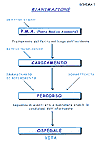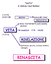 L'elemento che ha innescato la mia progettazione è stato il musical "CATS" di Sir Andrew Lloyd Webber (http://www.ccs.neu.edu/home/tower/songs/cats). "Cats" debuttò a Londra il 5 Gennaio 1981 e a Broadway il 10 Luglio 1982. Racconta di una festa a lungo attesa: il ballo annuale dei gatti del clan di Jellicle; ma il raduno al chiaro di luna, che si tiene ormai da tempo immemorabile in una discarica sulle sponde del Ta-migi, è molto più di una semplice festa. Il capo del clan, il vecchio Deuteronomio, deve scegliere l'eletto che salirà in cielo "più in alto, più in alto versogli spazi sferici" ("up, up to the heaviside layer") per vivere una seconda esistenza celeste.L'idea che è alla base del musical nasce dalla passione per i gatti di uno dei più grandi poeti del nostro tempo, Thomas Stearns Eliot; in particolare è tratto dal libretto in versi "Old Possum's Book of Pratical Cats" (traduzione italiana di Roberto Sanesi "Il libro dei gatti tuttofare" edito da Bompiani).La musica e la trama le ho tradotte graficamente per mezzo di una struttura frattale e mi sono accorta che corrisponde perfettamente allo schema di una RIANIMAZIONE TIPO che si svolge su una autoambulanza (vd. Schema A e B).