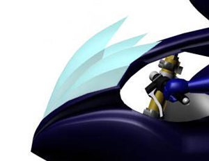 In base alla pressione dell'aria, rilevata dall'apposito sensore posto sul casco del pilota, viene regolata in tempo reale la posizione del cupolino anteriore per migliorarne la protezione aerodinamica.
