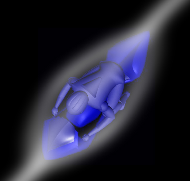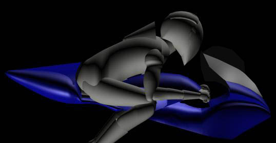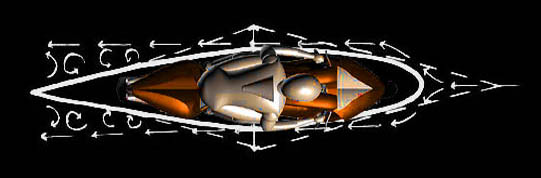 Nella posizione raccolta il pilota diventa parte integrante del sistema aerodinamico, rendendo necessaria la massima integrazione tra uomo e macchina, ottenuta tramite la generazione di forme curve, affusolate e spigolose intrecciate reciprocamente senza soluzione di continuità