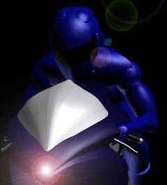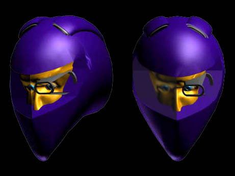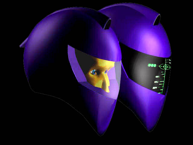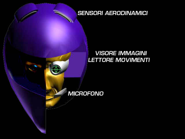 Alcuni esiti formali dell'elemento principale( interfaccia-casco), nei quali sono stati privilegiati l'angolo di visibiltà verso l'esterno, la linea afffusolata aerodinamica e la integrazione degli elementi funzionali ( sensori aerodinamici )