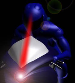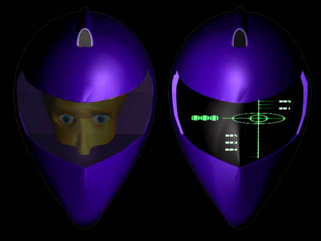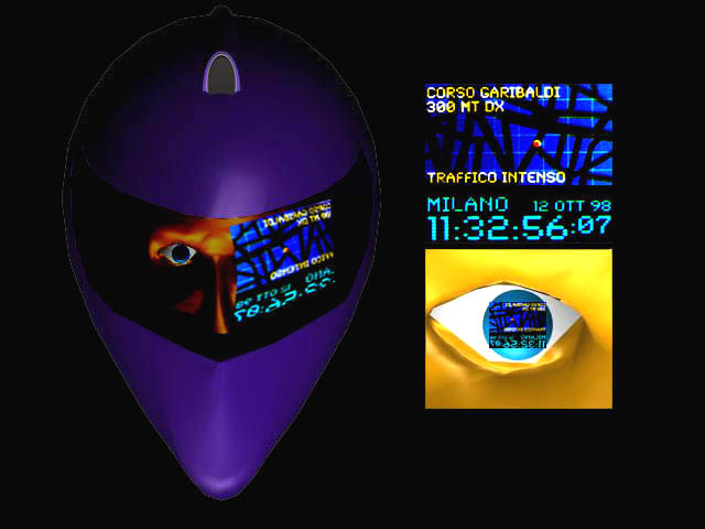 Esempio di possibile visualizzazione dei dati direttamente sulla retina o sulla visiera del casco. Le informazioni vengono inviate dalla centralina, posta sul veicolo, via infrarosso. Il casco contiene nell'imbottitura il ricevitore infrarosso, che codifica il pacchetto dati senza alcuna interferenza da parte di altre sorgenti, grazie ad un sistema di codificazione che scarta le informazioni estranee. Le immagini vengono proiettate sulla retina o sulla visiera, attraverso un sistema laser a bassa frequenza che rigenera le immagini stesse come se esse fossero poste ad un metro circa dall'utente, garantendone così la facile lettura e soprattutto la vista attraverso, condizione necessaria per la guida. Questo sistema è caratterizzato da dimensioni ridotte, da un basso consumo energetico, da un basso costo e in passato è stato sperimentato con successo sugli aerei militari e in formula1, per la visualizzazione rapida degli strumenti di bordo. Allo stesso modo sulla motocicletta i dati relativi alla velocità, al regime dei giri, all temperatura dell'acqua o ancora al sistema di navigazione satellitare, possono essere integrati all'interno del casco facilitandone la lettura ed in tal modo eliminando fisicamente le strumentazioni consuete che spesso distraggono il pilota dalla guida proprio per la loro difficoltosa lettura.
