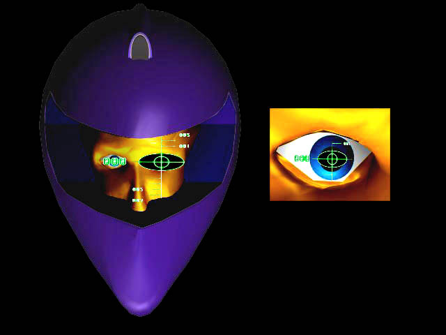 Un movimento chiave dell'occhio, viene codificato all'interno del lettore che, via infrarosso, lancia il comando alla centralina posta sul veicolo; nella figura viene illustrato il cambio di posizione dei fari, da anabbaglianti ad abbaglianti.