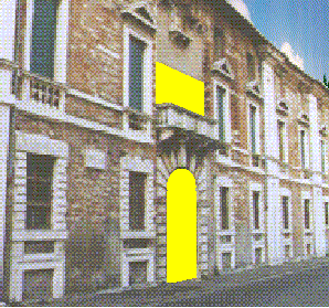 VILLA AVOGADRO FENAROLI: particolare del balcone e del portone