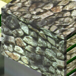 Talvolta sulle pareti rivestite in pietra potrà apparire qualche macchia di colorazione scura, come nel caso raffigurato, a richiamare la colorazione tipica di alcune porzioni di delle pareti rocciose del sito.