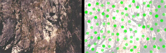 Quasi la totalitá della superficie risulta costituita da roccia nuda che assume colorazioni diverse, come si vedrá più avanti, per svariati motivi; solo in alcuni punti particolarmente umidi esiste della vegetazione. Per queste ragioni, la superficie dell'edificio dovrá avere una marcata uniformitá superficiale ottenibile attraverso l'uso dello stesso materiale per una larga porzione delle superfici rivestibili.