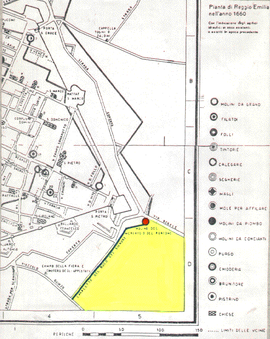 | Soglia storica 1625: nella zona dell’attuale stadio Mirabello il vescovo di Reggio fa costruire una villa dotata di un grande giardino ricco di ogni genere di essenza arborea, in questo stesso periodo una villa preesistente nei pressi dei borghi di S. Pietro viene trasformata in osteria. | ||