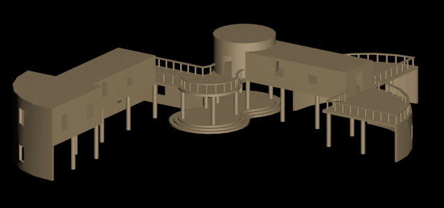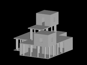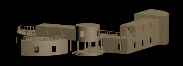 Inizialmente ho sostituito ai moduli del codice di scomposizione dello spazio degli altri moduli, incrementati nel loro aspetto formale, di modo tale da avere un bozza dello scenario, e per interpretare meglio il passaggio dalla struttura principale ad un ipotetico scenario.