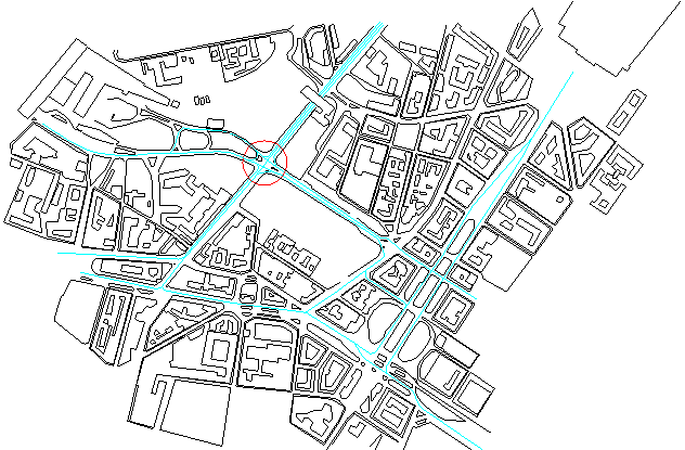 Nello schema sopra riportato abbiamo evidenziato con un tratto celeste i percorsi viari maggiormente trafficati e con un cerchio rosso il punto di maggior congestione.